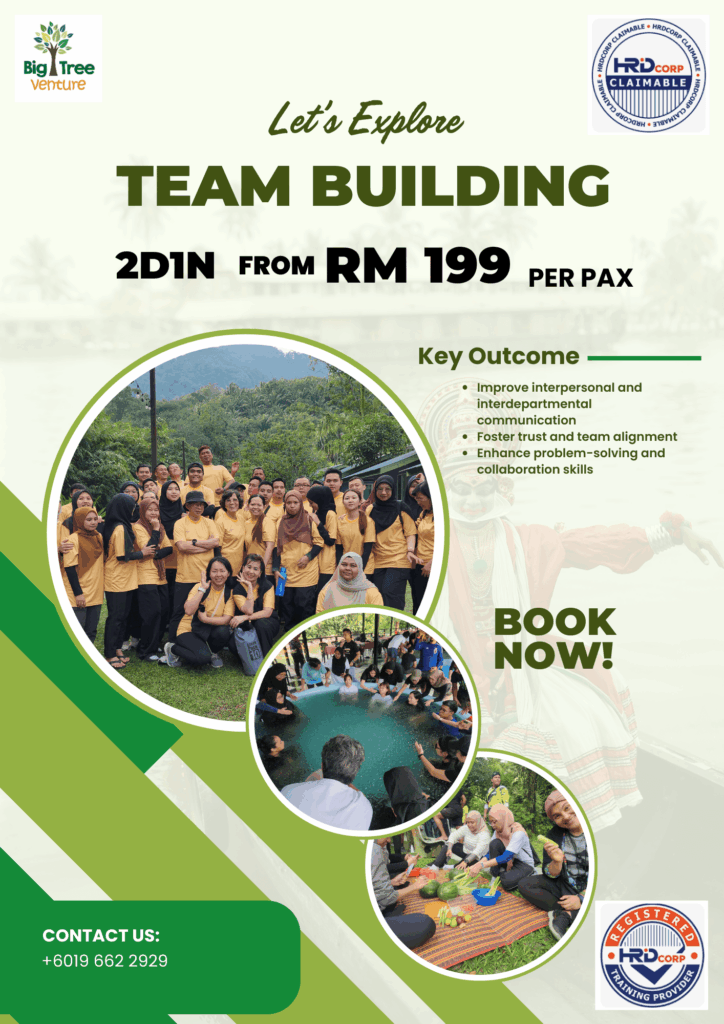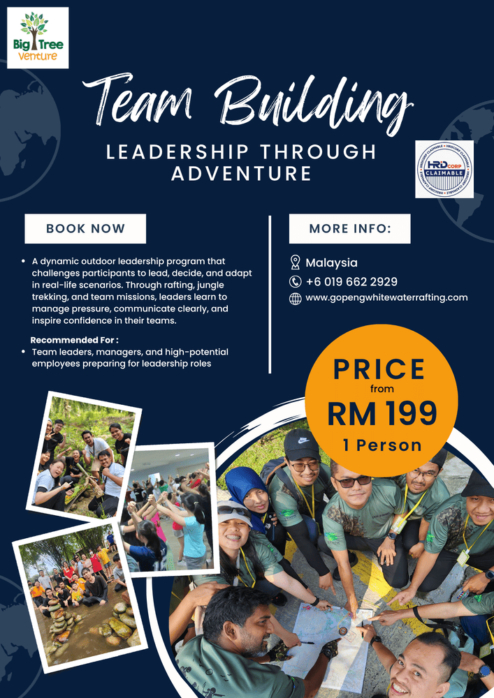 We offer a range of experiential learning and adventure-based programs, including corporate team building, leadership development, HRDF-claimable training, corporate retreats, and custom outdoor experiences like rafting, caving, and survival challenges.